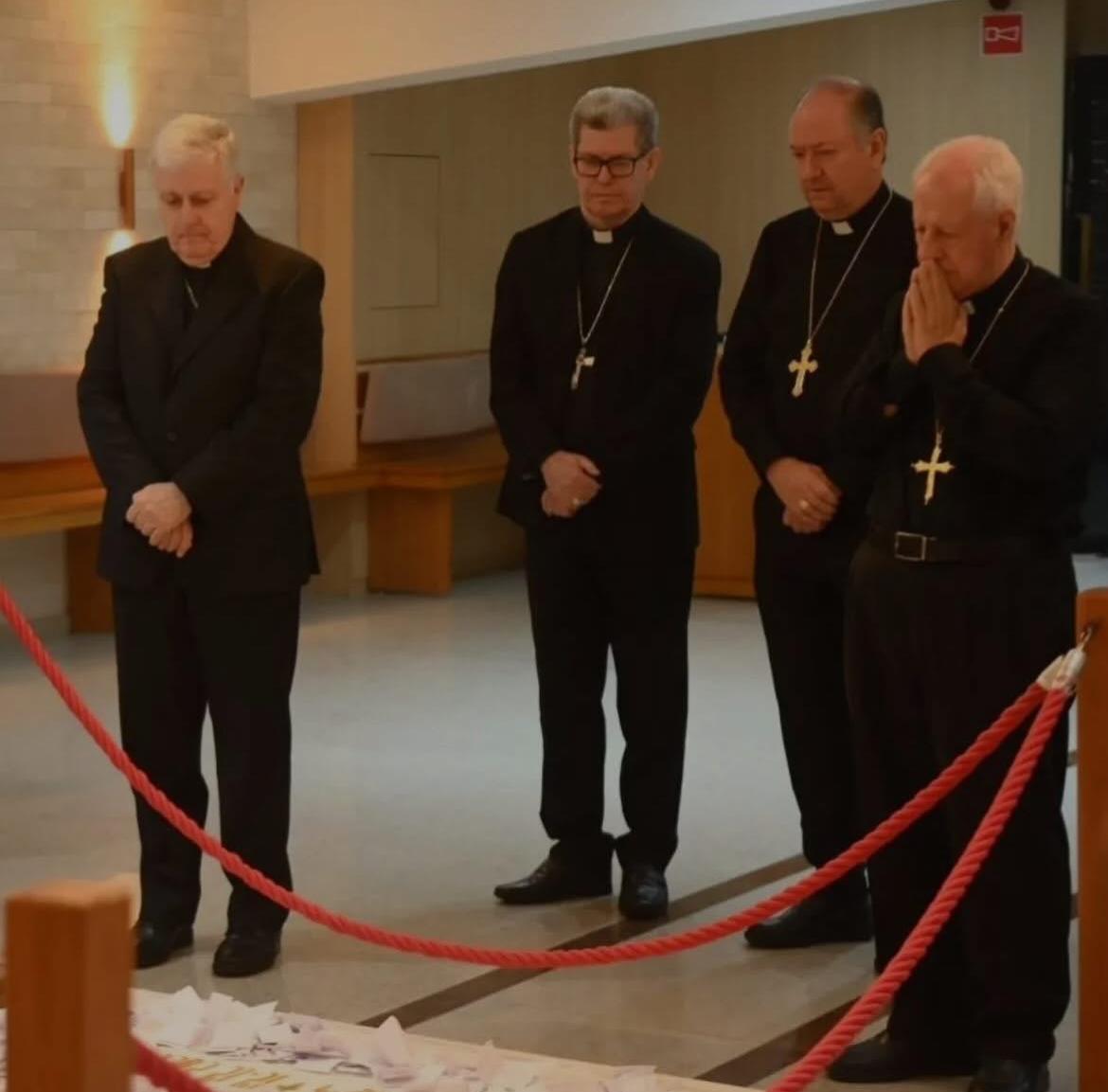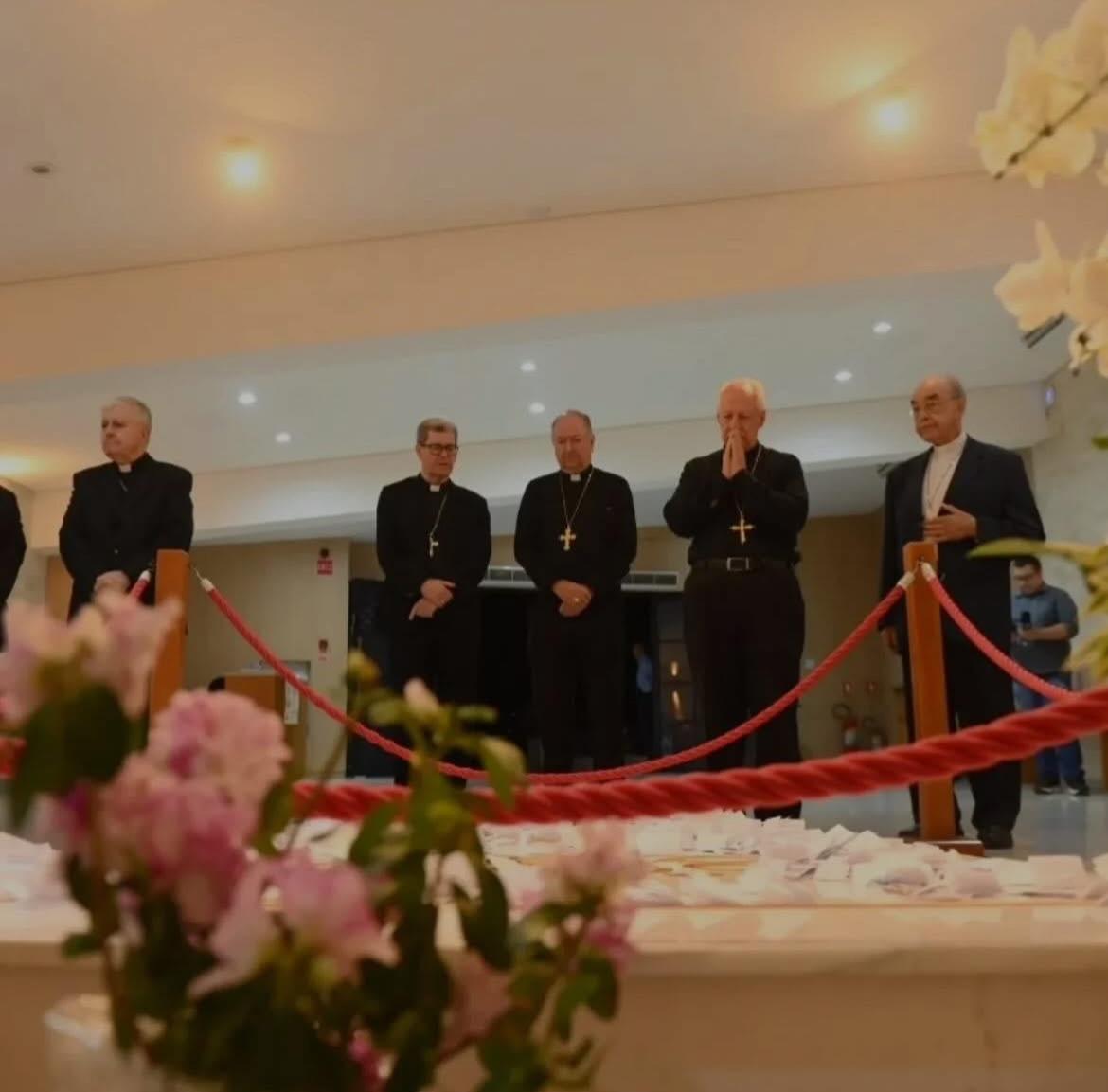 Na noite do domingo, 19 de abril, o Santuário do Pai das Misericórdias recebeu a visita do Núncio Apostólico no Brasil, Dom Giambattista Diquattro, acompanhado de 16 bispos do Brasil, que participam da Assembleia Geral dos Bispos, realizada em Aparecida (SP).